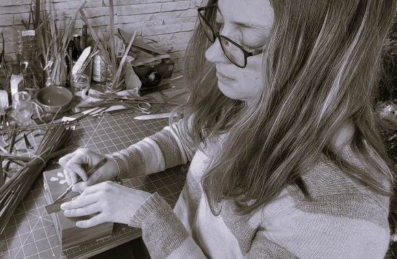 Spécialisée dans le travail de la paille de seigle destinée à la marqueterie, Jennifer s’attache à révéler la lumière au sein de ses tableaux, ses boîtes et l’ensemble de ses créations. Naturellement recouverte de silice (un verre d’origine minérale), cette matière singulière ne nécessite aucun vernis puisqu’elle brille naturellement. Le rôle de l’artisane consiste alors à orchestrer les formes et les orientations afin de capter et de multiplier les jeux lumineux, y compris dans les zones les plus ombragées.