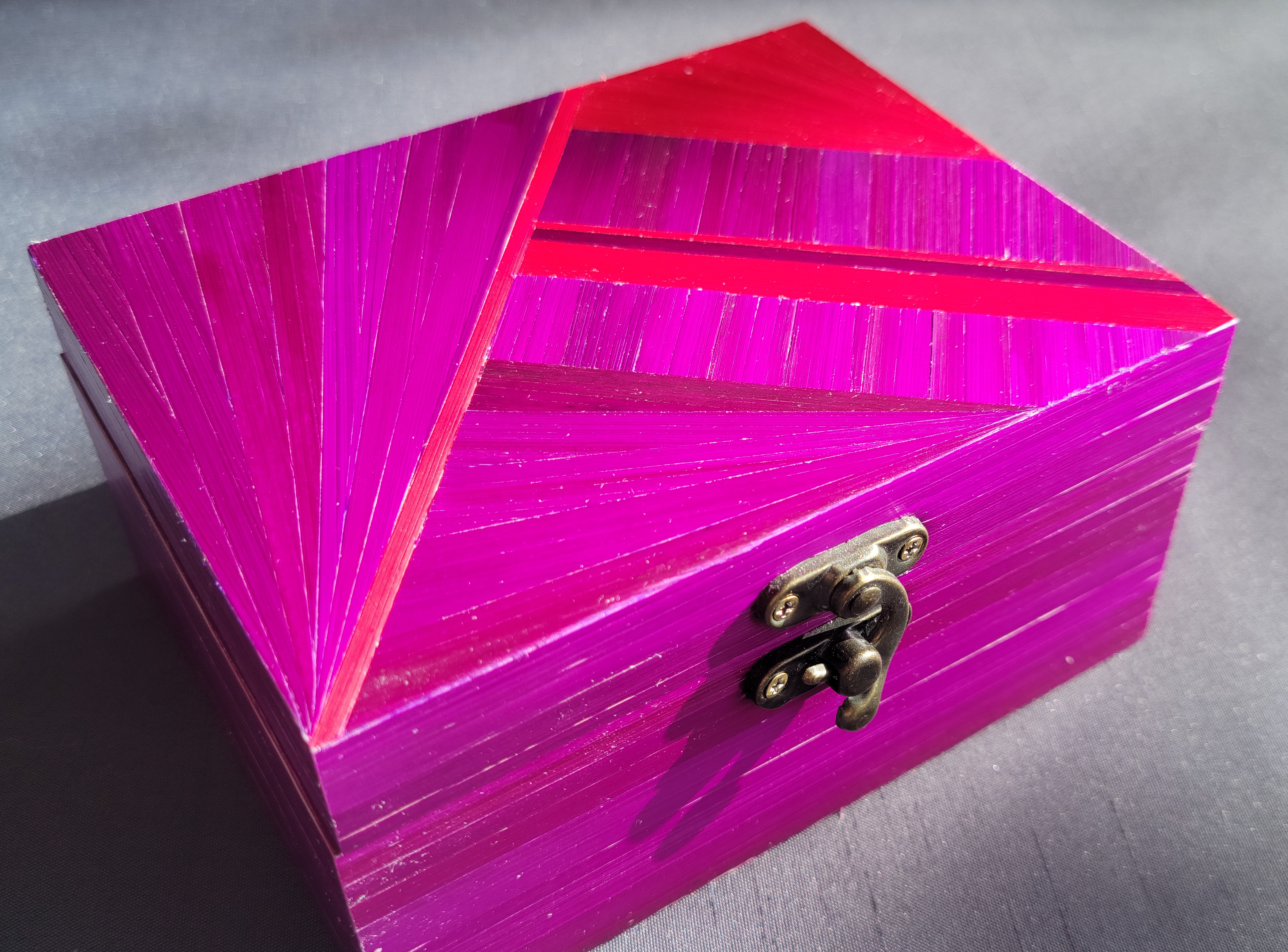 Spécialisée dans le travail de la paille de seigle destinée à la marqueterie, Jennifer s’attache à révéler la lumière au sein de ses tableaux, ses boîtes et l’ensemble de ses créations. Naturellement recouverte de silice (un verre d’origine minérale), cette matière singulière ne nécessite aucun vernis puisqu’elle brille naturellement. Le rôle de l’artisane consiste alors à orchestrer les formes et les orientations afin de capter et de multiplier les jeux lumineux, y compris dans les zones les plus ombragées.