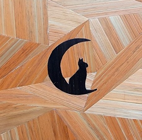A la fois classique par ses illustrations de chat, il possède une touche de modernité par le fond graphique. Cette décoration unique et rare.